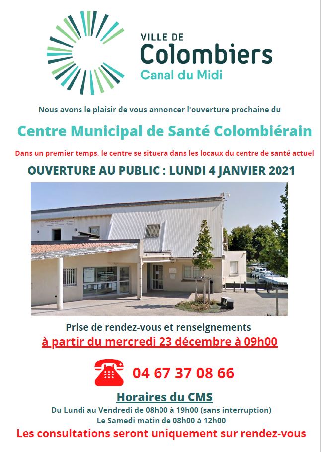 Nous avons le plaisir de vous annoncer l’ouverture prochaine du Centre Municipal de Santé Colombiérain