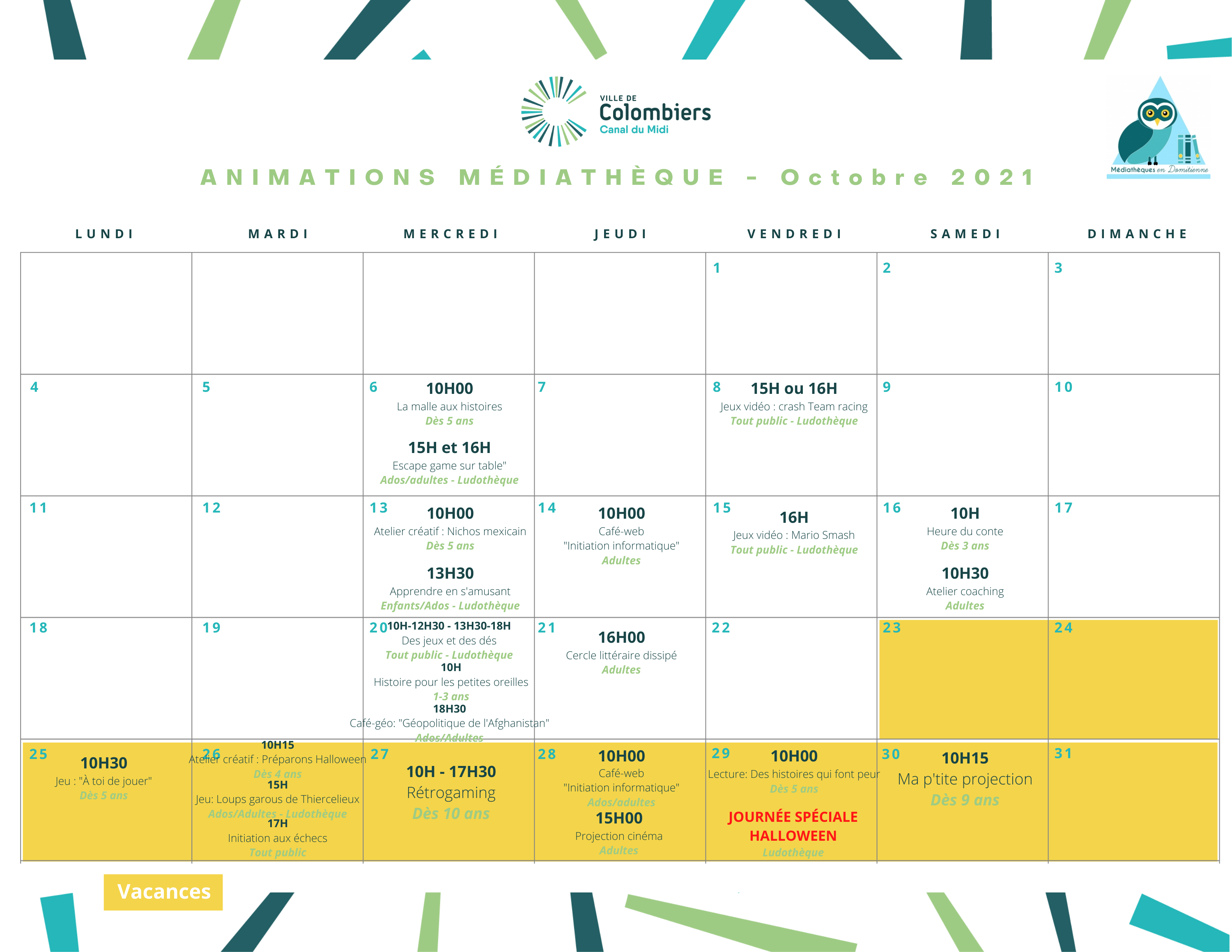 PROGRAMMATION DES ANIMATIONS DE LA MEDIATHEQUE – Octobre 2021