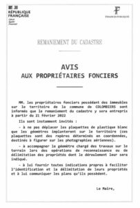 La Direction Départementale des Finances Publiques va entreprendre les opérations de remaniement du cadastre à partir du 21 février 2022. –