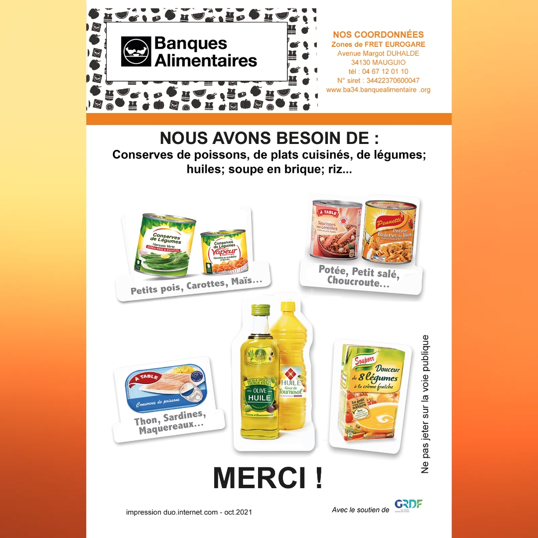 Les bénévoles de la Banque Alimentaire, en gilet orange, vous attendrons aux portes des magasins participants.