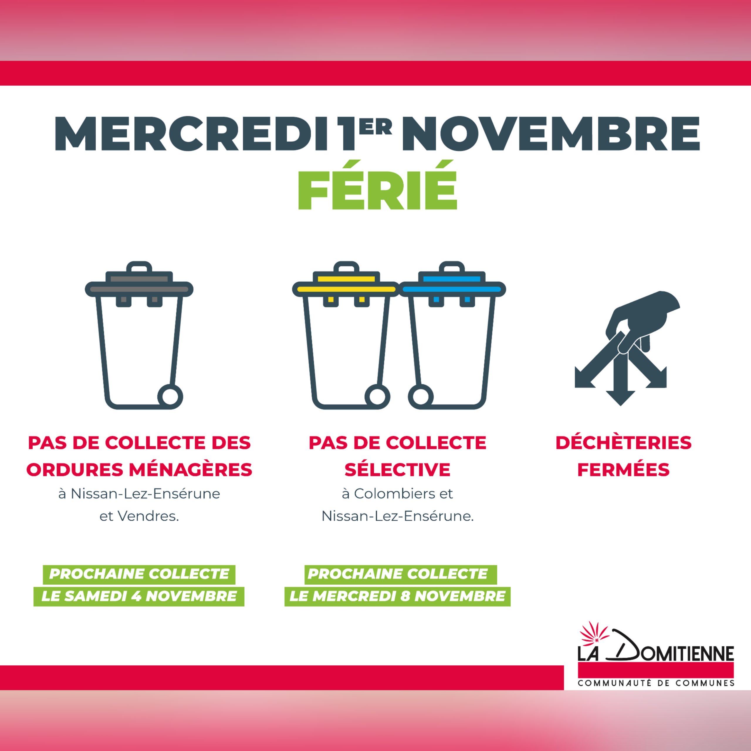 Pas de collecte des produits recyclables (bacs jaune et bleu) pour Colombiers et Nissan-Lez-Ensérune