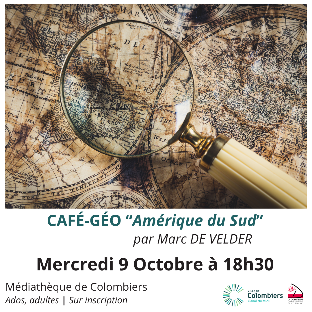 📆 Mercredi 9 Octobre 2024 à 18h30, la médiathèque de Colombiers vous propose un café-géo sur le thème de la “Amérique du Sud” par Marc de Velder.