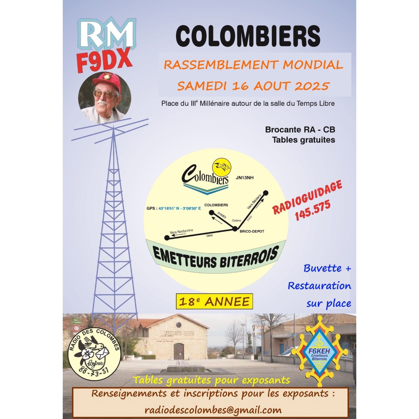 Le 18ème RMF9DX se déroulera à Colombiers le samedi 16 août 2025 place du IIIème Millénaire en association avec le Club Radio des Colombes.