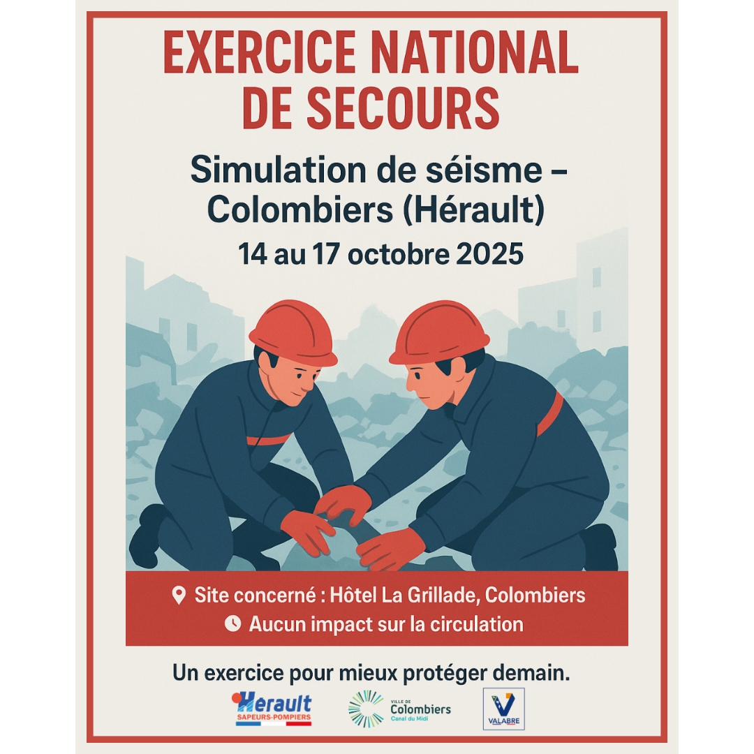 🚨 Exercice national de secours à Colombiers – du 14 au 17 octobre 2025 🚒