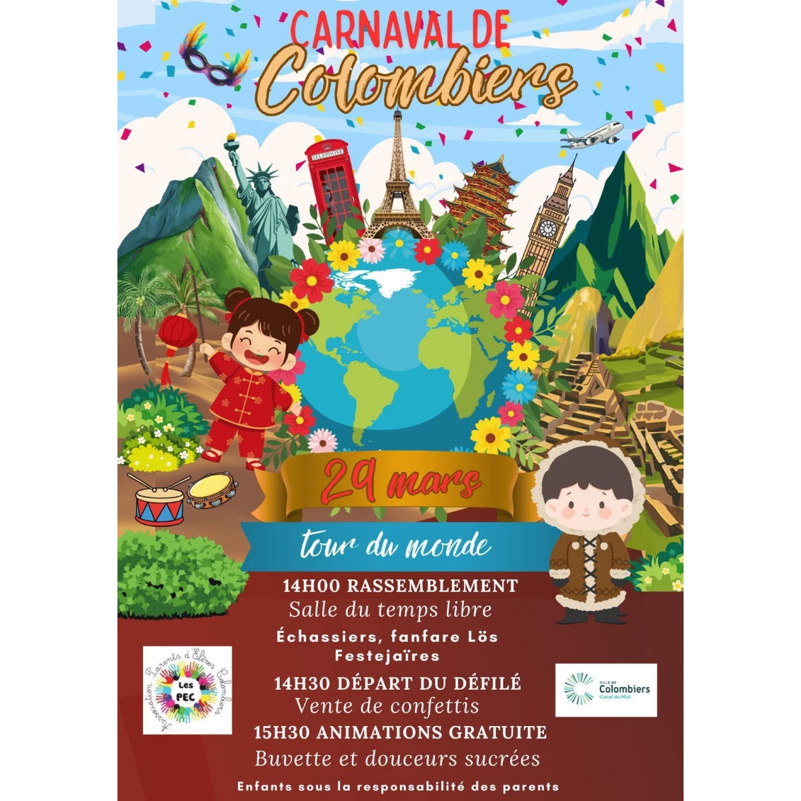 Accueil » Toutes les actualités » 🎭🌍 Carnaval de Colombiers – Tour du Monde ! 🌍🎭