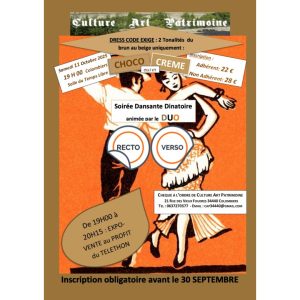 L’Association CAP (Culture Art Patrimoine) vous invite à une soirée dansante dinatoire.  Samedi 11 Octobre 2025  19H00  Salle du Temps Libre  Inscription obligatoire avant le 30 septembre 2025  06.37.27.05.77  cap34440@gmail.com  Adhérent : 22€ / Non…