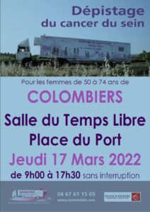 Le mammobile sera présent le jeudi 17 mars sur le port de Colombiers pour un dépistage du cancer du sein pour toutes les femmes de 50 à 74 ans.
