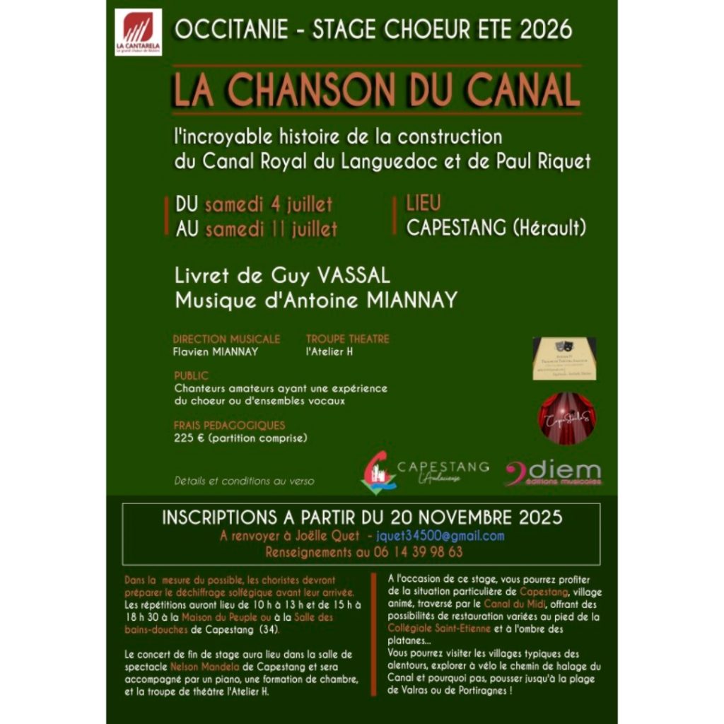 Avis aux passionnés de chant ! La Cantarela, le grand chœur de Béziers, vous invite à une expérience musicale et historique unique au cœur de l’Hérault. LE PROJET : “LA CHANSON DU CANAL” Plongez dans l’incroyable histoire de la construction du Canal Royal du Languedoc et de Paul Riquet à travers cette œuvre originale. • Livret : Guy…