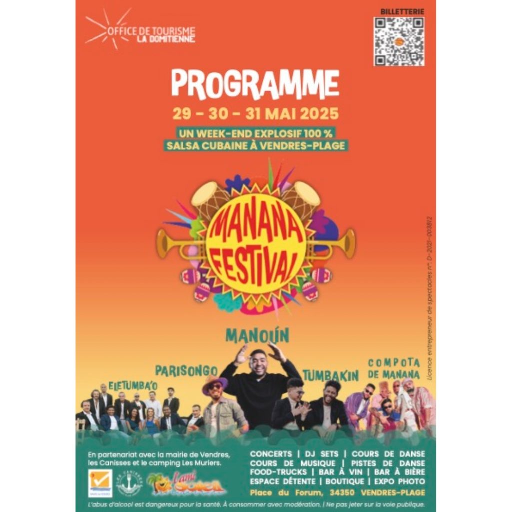 Un voyage musical exceptionnel Plongez dans l’univers envoûtant de la musique latine et cubaine lors de La Manana Festival, organisé par l’Office de Tourisme La Domitienne, les 29, 30 et 31 mai 2025 à Vendres-Plage. Trois soirées magiques vous attendent avec des groupes d’exception prêts à vous faire vibrer au rythme de la salsa, de…