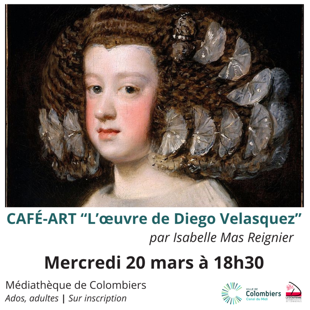 Mercredi 20 mars 2024 à 18h30, la médiathèque de Colombiers vous propose un café-art sur “L’œuvre de Diego Velasquez” par Isabelle Mas Reignier. Une animation gratuite, sur inscription par mail à mediatheque.colombiers@ladomitienne.com ou par téléphone au 04.67.11.86.09 #villedecolombiers #mediathequedecolombiers #ladomitienne