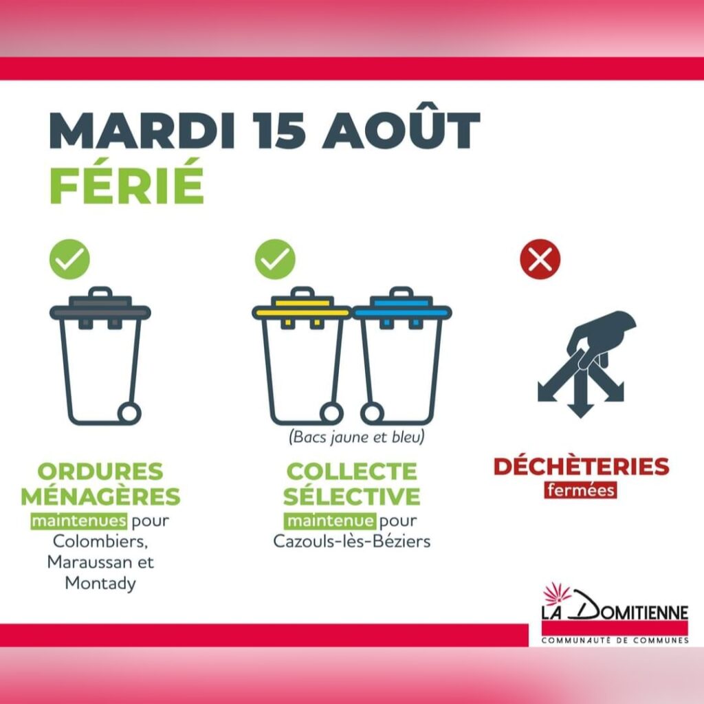 Lire la suiteFérié – Mardi 15 Août / Collectes et Déchèteries