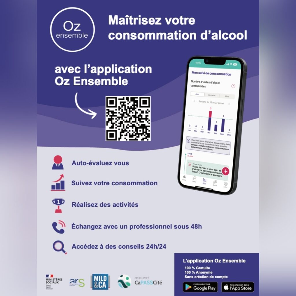 “Oz Ensemble” c’est une application mobile développée par le Ministère de la Santé et une équipe de télé-suivi dont l’objectif est de redonner aux usagers la maîtrise de leur consommation d’alcool. Ce service a été créé pour : • Toucher une population qui ne se sent pas concernée par le risque alcool • Aider les usagers…