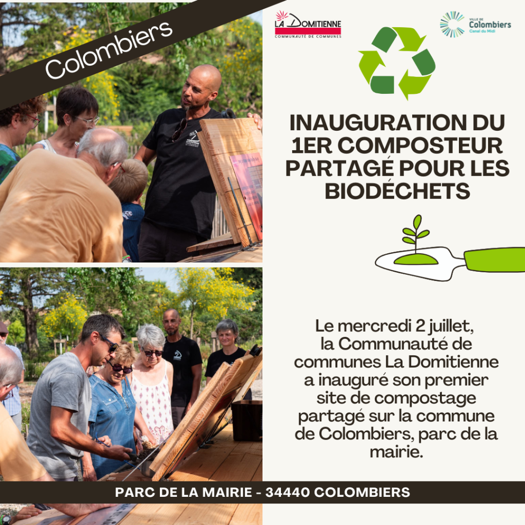 Le mercredi 2 juillet, la Communauté de communes La Domitienne a inauguré son premier site de compostage partagé sur la commune de Colombiers, parc de la mairie. Ce projet, présenté en réunion publique le 15 avril, s’inscrit dans le cadre des engagements locaux en faveur de la réduction des déchets, en conformité avec la loi…