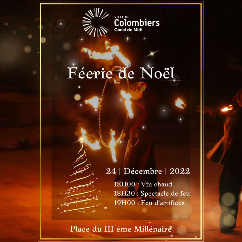 Le samedi 24 décembre 2022 à 18h nous vous attendons nombreux sur la Place du 3ème Millénaire pour profiter d’un spectacle de feu suivi d’un feu d’artifice. Samedi 24 décembre 2022 Place du III ème Millénaire 18H00 Vin chaud 18H30 Spectacle de feu 19H00 Feu d’artifice