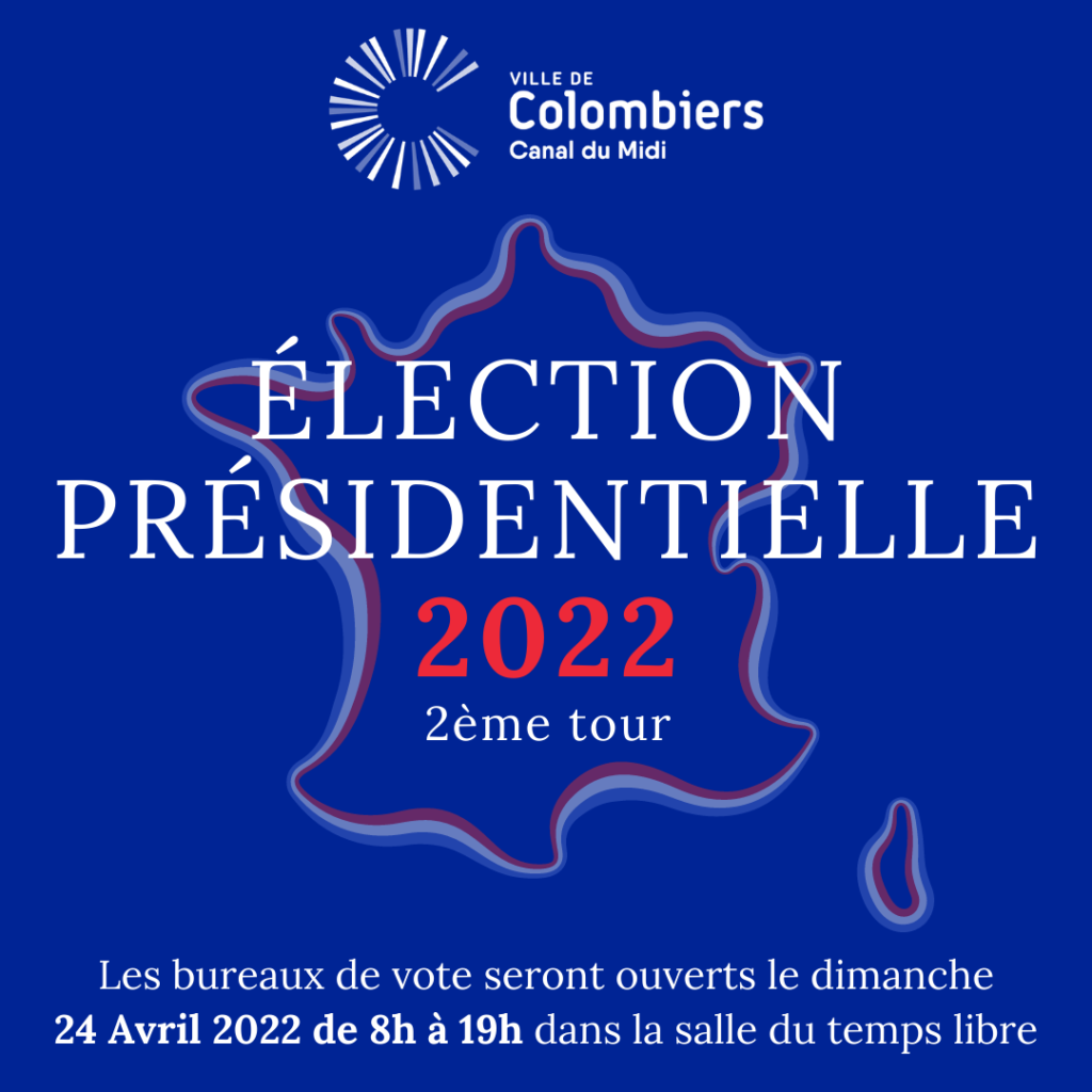 Élection Présidentielle 2022 Second tour de l’Élection Présidentielle le dimanche 24 Avril 2022. Les bureaux de vote seront ouverts de 8h à 19h dans la salle du temps libre. Munissez-vous de votre carte d’identité. #villedecolombiers #electionpresidentielle2022