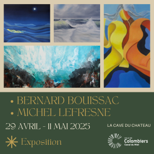 Exposition – Peintures Maison de Tourisme à Colombiers – La cave du Château Ouvert du mardi au dimanche de 09h30 à 12h30 et de 15h00 à 18h00 – fermé le lundi Du 29 Avril – 11 Mai 2025 Pour plus d’informations : 04.67.37.00.90 #villedecolombiers #bernardbouissac #michellefresne #artiste #sculpteur #iloveart #artcollector #oilpainting #instaart #sculpture #tableau #peinture…