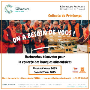 La collecte de la Banque Alimentaire est un temps fort pour soutenir les personnes en difficulté. Les personnes qui peuvent donner quelques heures de leur temps les 16 et 17 mai 2025, merci de contacter Claire-Marie CABROL 04.67.11.86.05 cmcabrol@ville-colombiers.fr #villedecolombiers #banquesalimentaires #collectenationale #herault #occitanie