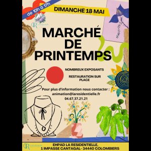 ️ 4ème édition au bénéfice de l’Association des Résidents « Les Colombes de la Résidentielle » ️ Nous sommes ravis de vous annoncer un marché en extérieur le dimanche 18 mai de 10h à 17h ! **Entrée gratuite !** Venez découvrir des produits locaux et des services spécialement conçus pour nos résidents et leurs familles. À…