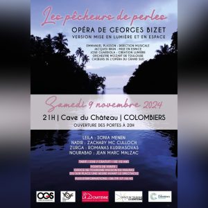 “Les pêcheurs de perles ” de Georges Bizet Samedi 9 novembre – 21H Cave de Château – Colombiers Tarif : 35€ – Gratuit pour les – de 10 ans Réservez dès maintenant en ligne : https://billetterie.tourismeendomitienne.com/billeterie-spectacle/opera/opera-les-pecheurs-de-perles ou à l’Office de Tourisme La Domitienne – Maison du Malpas ou directement le jour de l’événement 1h avant le…