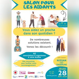 Vous aidez un proche dans son quotidien ? De nombreuses solutions existent pour faciliter votre accompagnement. Venez les découvrir Jeudi 28 novembre 2024 De 10h à 18h Salle Michel Galabru à Nissan-lez-Ensérune 40 associations et organismes à votre écoute ️ Des rencontres pour vous accompagner et vous soutenir #villedecolombiers #nissanlezenserune #salonpourlesaidants #ladomitienne #herault