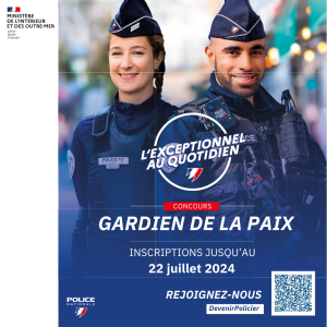 Plusieurs milliers de postes sur toute la France! La police nationale organise un concours pour recruter et former des futurs gardiens de la paix. Les inscriptions sont ouvertes en ligne jusqu’au 22 juillet 2024. Les premières épreuves débuteront le 24 septembre 2024. + d’informations sur notre site carrière: https://www.police-nationale.interieur.gouv.fr/nous-rejoindre/nos-voies-dacces/devenir-policier/gpx/ext Inscriptions: https://www.police-nationale.interieur.gouv.fr/nous-rejoindre/inscriptions-aux-concours-et-selections/gardien-de-paix-2-session-concours-externe Une question, un renseignement…