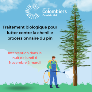 Notre prestataire interviendra dans la nuit de lundi 6 novembre 2023 à mardi par un traitement biologique pulvériser à l’aide de canon-vaporisateur thermique pour éviter la prolifération de chenilles processionnaires du pin. Nous vous prions de bien vouloir nous excuser pour les nuisances sonores et vous remercions de votre compréhension. #villedecolombiers