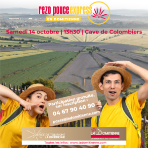 La Domitienne et son Office de Tourisme organisent le « Rallye Rezo Pouce Express en Domitienne » le samedi 14 octobre à 13H30 à la Cave de Colombiers. Il s’agit de découvrir ou redécouvrir l’auto-stop et le territoire grâce à un circuit en auto-stop en équipe de deux. Une petite épreuve permettra de valider chaque étape,…
