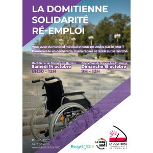 Samedi 14 octobre – Déchèterie de Cazouls-lès-Béziers – 8H30 à 12H Dimanche 15 octobre – Déchèterie de Nissan-Lez-Ensérune – 9H à 12H Vous avez du matériel médical et vous ne voulez pas le jeter? Emmenez-le en déchèterie au stand Le Bon Sens du Ré-Emploi. Il sera réparé et remis sur le marché.