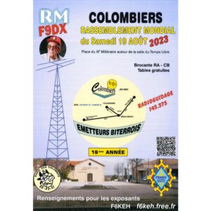 A vos agendas Samedi 19 août 2023 Place du III ème Millénaire de 09h00 – 16h00 Cette année, il n’y aura pas de repas mais restauration rapide. La buvette est maintenue Pour plus d’informations : f6keh.free.fr