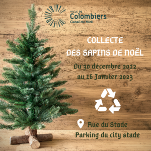 La mairie de Colombiers propose un service de collecte de sapins de Noël sur la commune du 30 décembre 2022 au 16 janvier 2023. Déposer son sapin Les sapins naturels et non décorés pourront être déposés (sans sac) Point de dépôt : rue du stade au parking du city stade https://maps.app.goo.gl/n7fuBYd6gmJJhhq57 Merci de votre participation