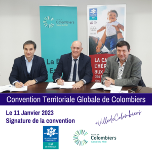 Le 11 janvier 2023, alain CARALP (Maire de Colombiers), Thierry MATHIEU (Directeur de la CAF de l’Hérault) et Bruno VIC (vice-Président du Conseil d’administration) signaient la Convention Territoriale Globale pour Colombiers. Établie par le service jeunesse conformément aux objectifs de la CAF, cette démarche fondée sur le partenariat renforce l’efficacité, la cohérence et la coordination…