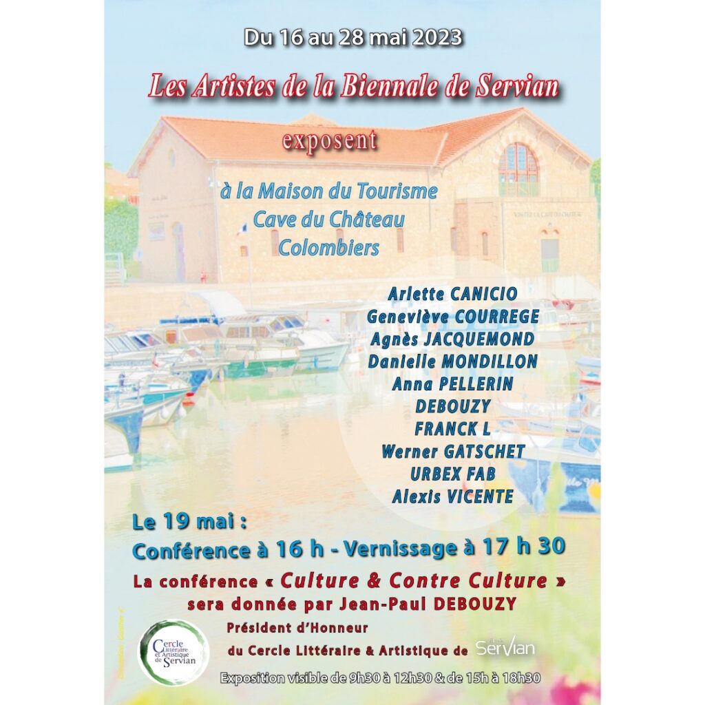 Le Cercle Littéraire & Artistique de Servian organise une conférence “Culture & Contre Culture” qui sera animée par Jean-Paul DEBOUZY. Conférence Vendredi 19 Mai 2023 16h00 Maison de Tourisme à Colombiers – La cave du Château