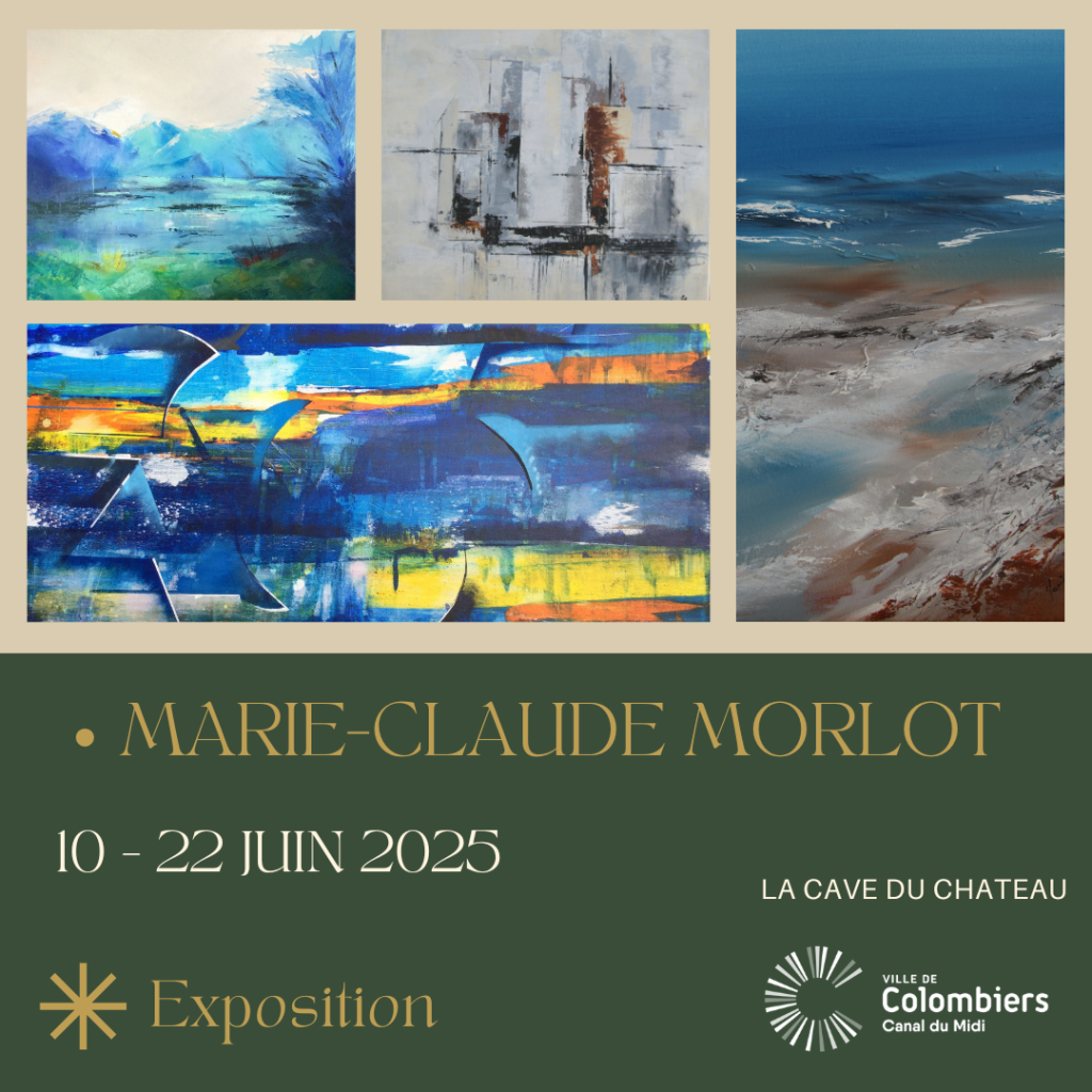 Exposition – Peintures Maison de Tourisme à Colombiers – La cave du Château Ouvert du mardi au dimanche de 09h30 à 13h00 et de 14h30 à 18h00 – fermé le lundi Du 10 – 22 Juin 2025 Pour plus d’informations : 04.67.37.00.90 #villedecolombiers #marieclaudemorlot #jeanmarieromain #artiste #sculpteur #iloveart #artcollector #oilpainting #instaart #sculpture #tableau #peinture #herault…