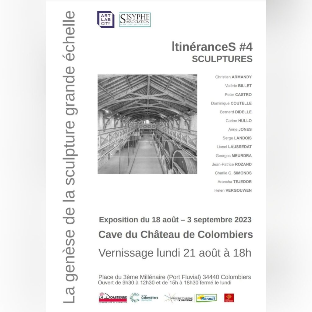 Association Sisyphe en collaboration avec ART-LAB-CITY Exposition – Sculptures ” ItinéranceS #4 “ Du 18 Août au 03 Septembre 2023 Maison de Tourisme à Colombiers – La cave du Château Vernissage le lundi 21 Août à 18h00 Ouvert du mardi au dimanche de 09h30 à 12h30 et de 15h00 à 18h30 – fermé le lundi…