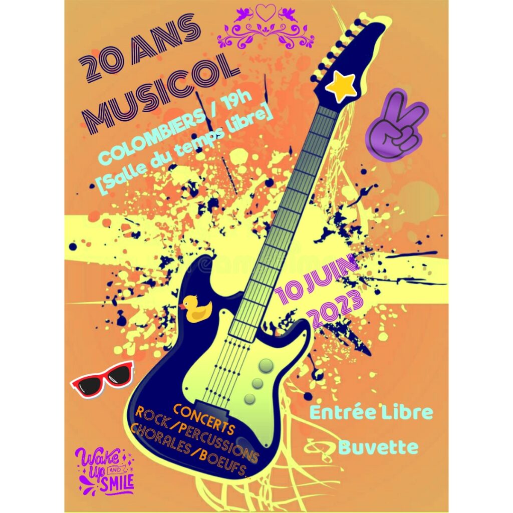L’association Music’Col fête ses 20 ans le 10 Juin 2023 à la salle du Temps Libre dès 19h. ️ Entrée libre! Venez nombreux